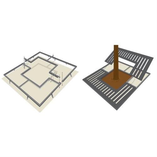 Support Frames stabilise the grilles and helps to prevent shrinkage and subsidence of the tree pit. Security Clamps secure the individual sections of the tree grille to each other and to the support frame, which increases the rigidity of the whole unit and prevents removal of the grille sections.