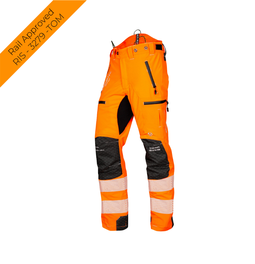 - AT4070 Certification: Design C trousers with saw protection to the front and back of the legs, rated Class 1 (20 m/s), conforming to EN 381-5 standards.
