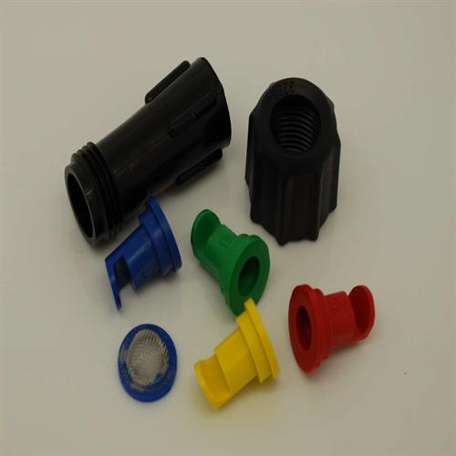 Anvil nozzle creates a course droplet spectrum and is for use with Herbicides. Recommended Pressure set at 1 bar. Use Yellow SMV on series 2000 or turn control valve inside classic to low. Suitable for all Cooper Pegler standard lances and knapsacks. Nozzles also fit Berthoud and Hardi, amongst others. ; Nozzles in order from smallest to largest output (flow rate) and spray width: Please be advise that calibration figures are given at 3.6km/h Yellow = 0.6 Litre per minute @ 1 bar Green = 1.2 Litre per minute @ 1 bar Blue = 1.8 Litre per minute @ 1 bar Red = 2.4 Litre per minute @ 1 bar Screw on cap 1 x rubber backing washer